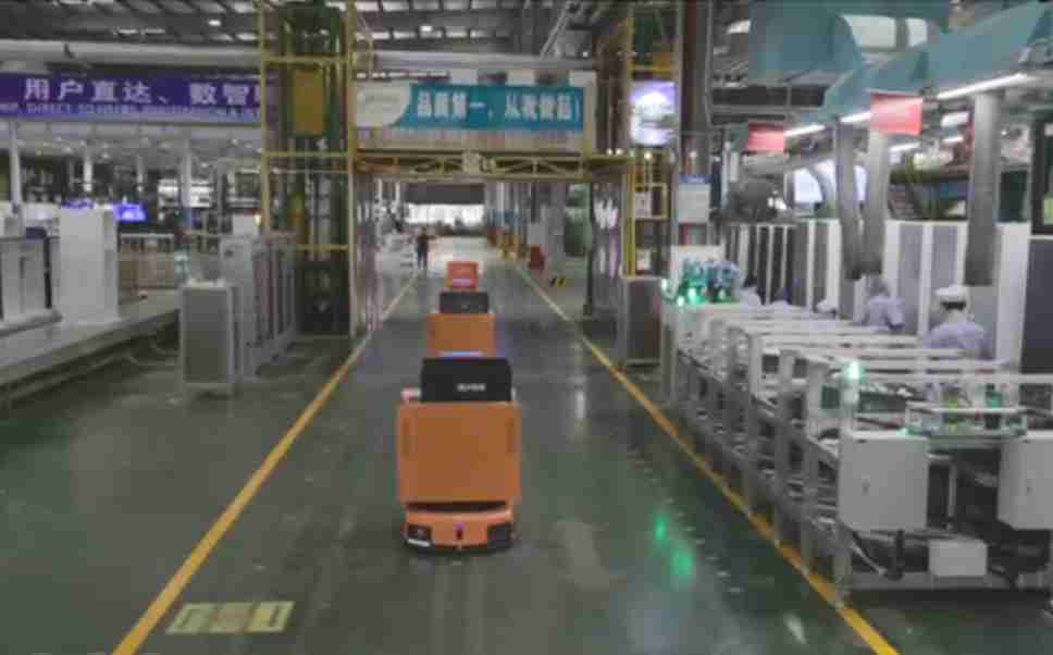 为车载冰箱物流配送打造的智能解决方案,,,,包含产中物流通过潜伏举升AMR搬运至线边,,,,产后成品物流智能仓储,,,,流程包含产中物流智能齐套入库,,,,线边安灯叫料AMR智能配送至线边,,成品入库、、、、出库,,,通过无人堆高车机器人,,,智能仓储管理替代人工作业管理,,,实现更高存储、、、更高效率、、更具柔性化的解决方案。。。